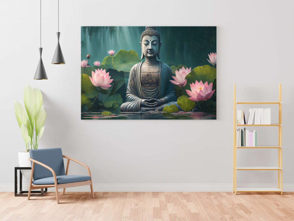 Transform your space into a sanctuary of tranquility with our exquisite Buddha wall paintings. Crafted with meticulous detail and imbued with spiritual serenity, each piece radiates peace and harmony. Elevate your home decor with these timeless artworks, perfect for creating a serene ambiance in any room. Explore our collection and invite the essence of enlightenment into your living space today The canvas is carefully stretched over a durable wooden frame, creating a gallery-quality finish that adds a touch of elegance to any room. Whether you’re looking for a Buddha framed painting for wall or a Buddha big wall painting with frame