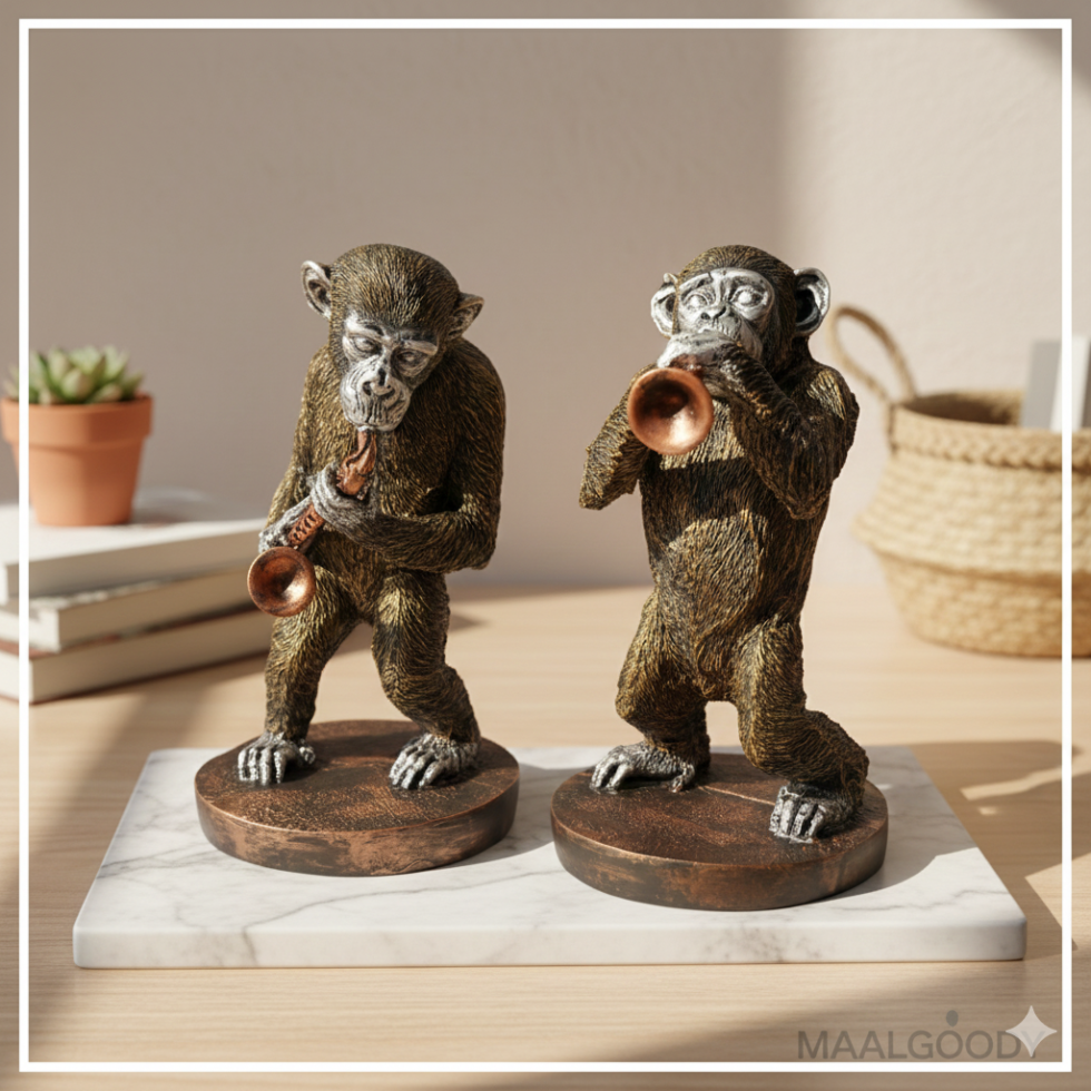 UNIQUE ARTISTIC COLLECTIONS: Choose between two distinct styles: the whimsical Musical Chimpanzee Duo or the philosophically inspired Geometric “Three Wise Monkeys” set.