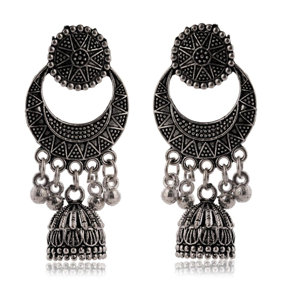 Women’s Handmade Traditional Jhumki With Moon Motif Chandbali Design Ethnic Wedding Wear Earrings For Women